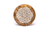 Kompakts galdiņš, kas izgatavots no masīva mango koka, ar stilīgu baltu Dzīvības zieda apdruku uz virsmas.